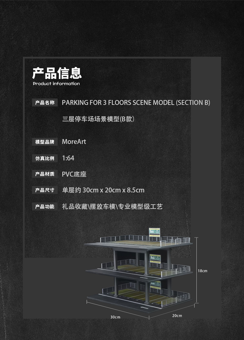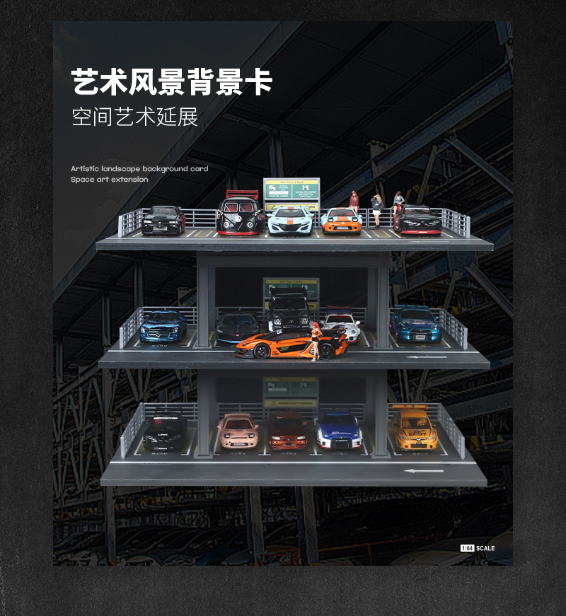匯藝MoreArt1:64 三層停車場(B款)場景仿真模型