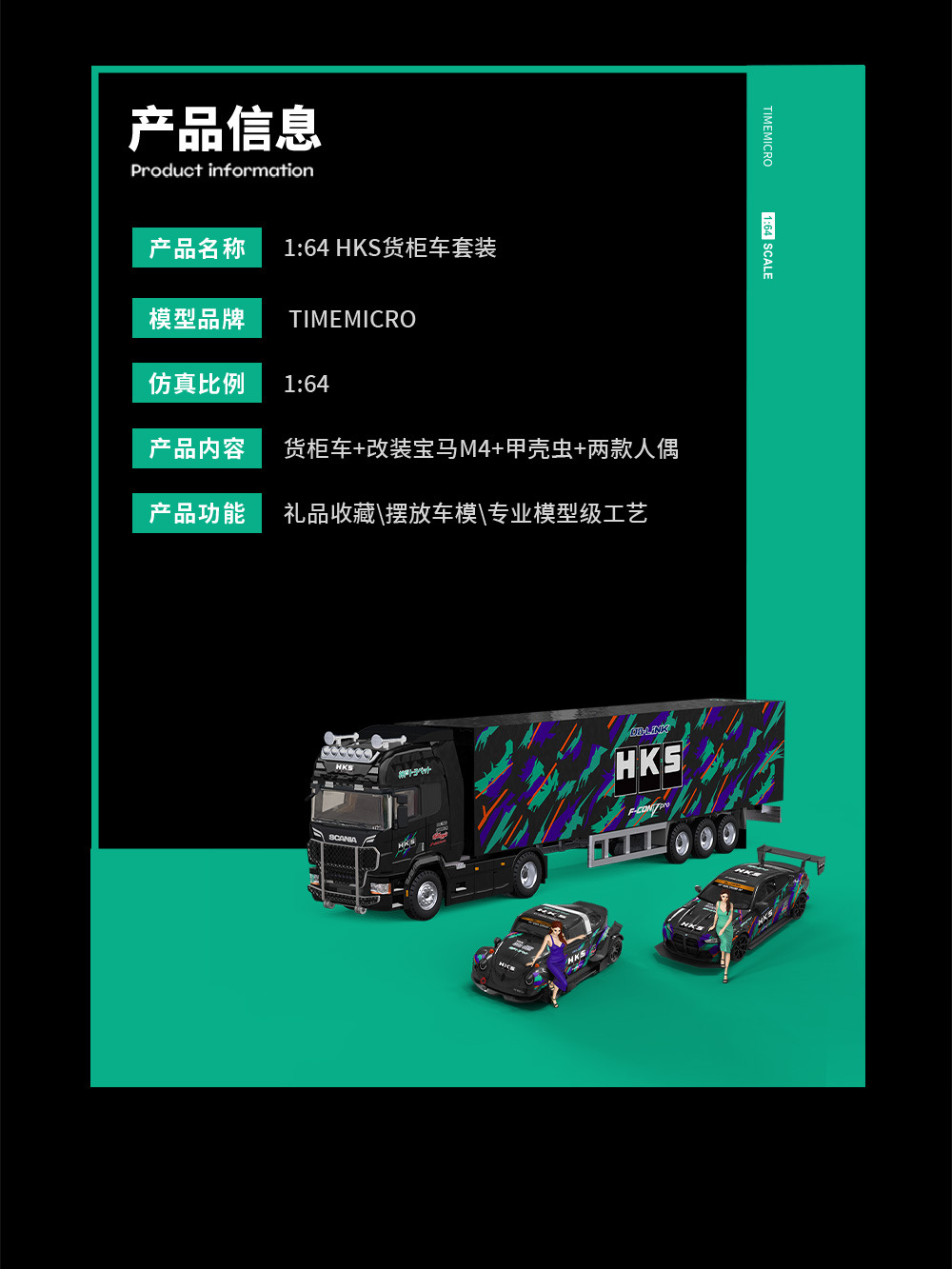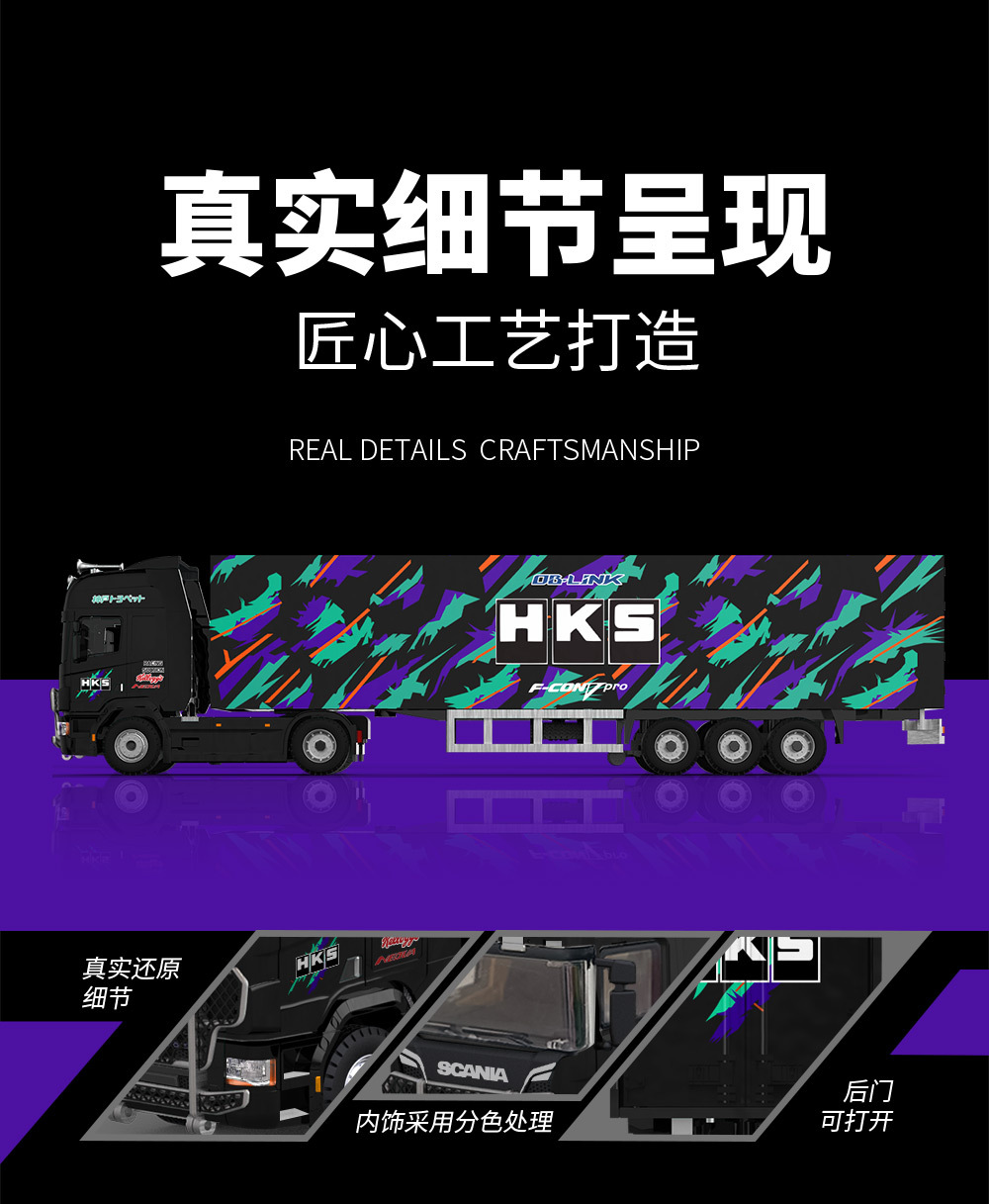 時光1:64 M4改裝款甲殼蟲斯堪尼亞貨櫃車HKS系列仿真合金車模型