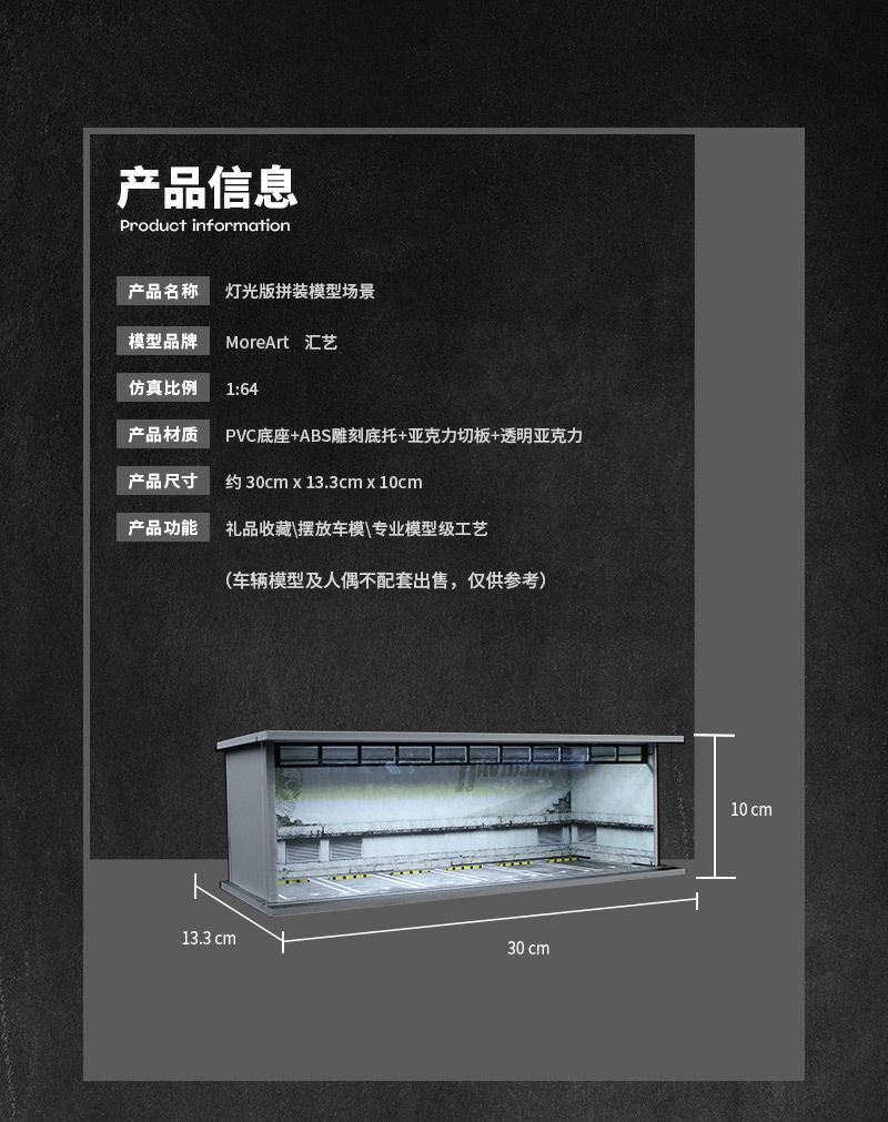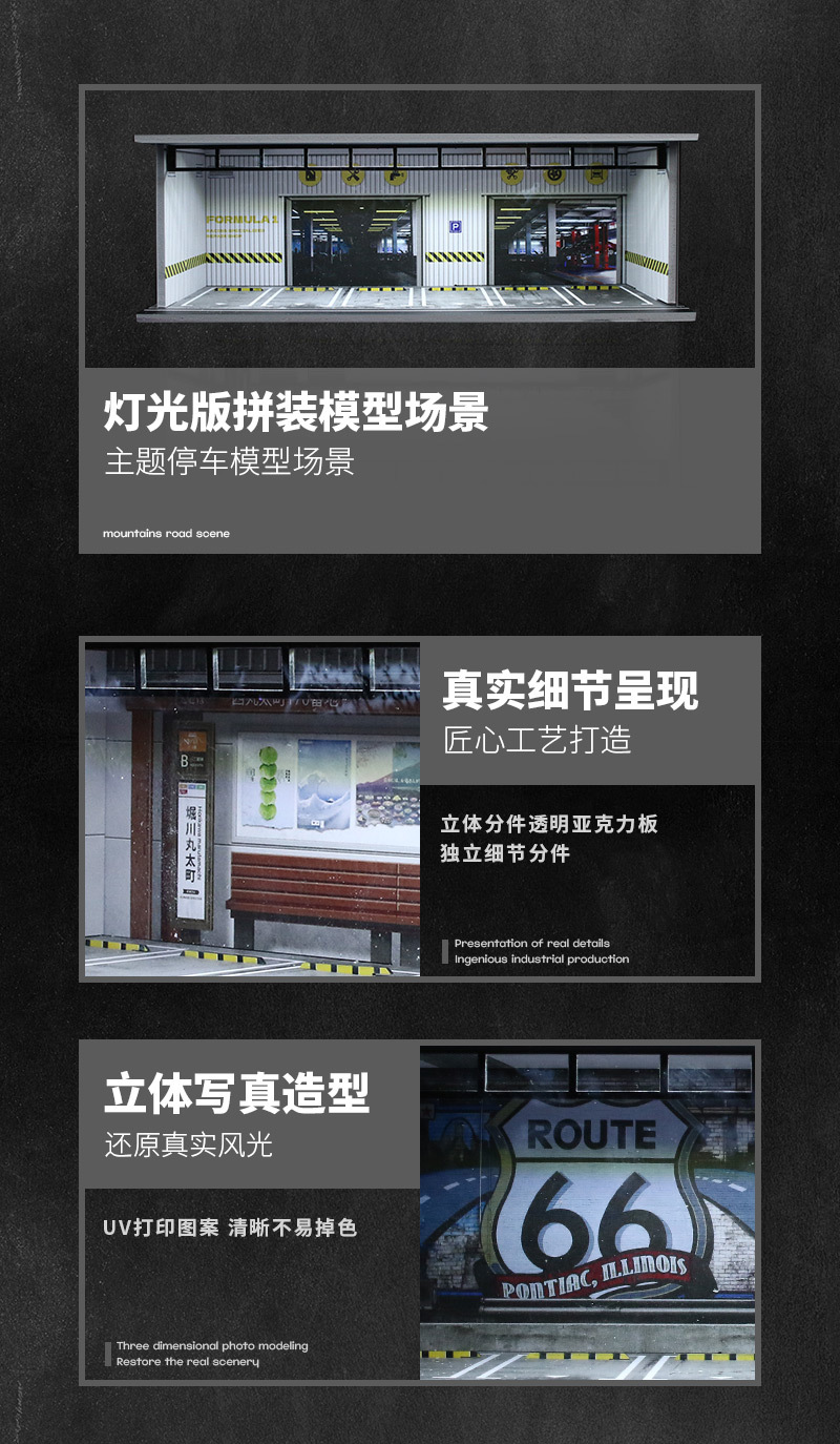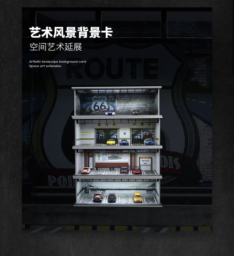 MoreArt 1:64 停車場燈光版拼裝場景 停車位擺件