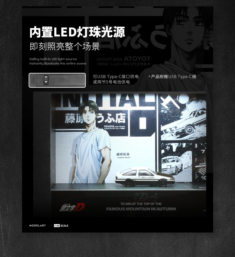 ModelArt 1:64 頭文字D系列燈光版相框立體畫 禮品擺件