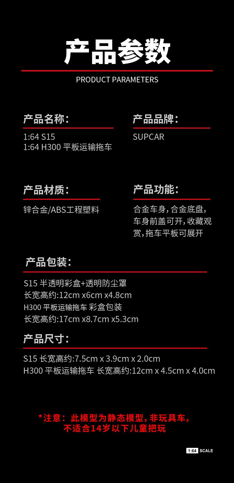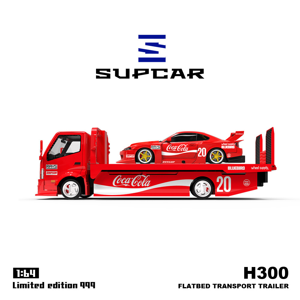 SUPCAR 1:64 S15和H300 平板運輸拖車可口可樂套裝合金模型