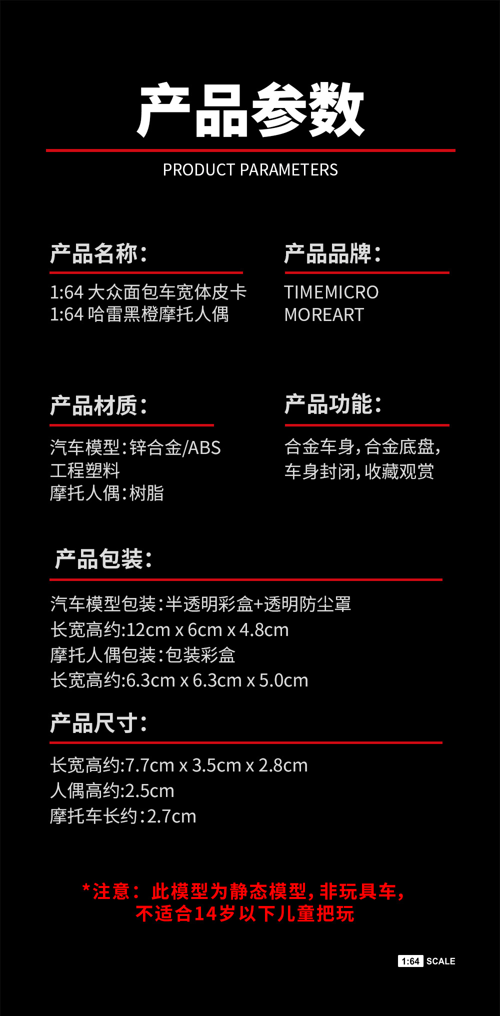 TimeMicro & MoreArt 1:64 大衆T1皮卡哈雷系列仿真汽車模型