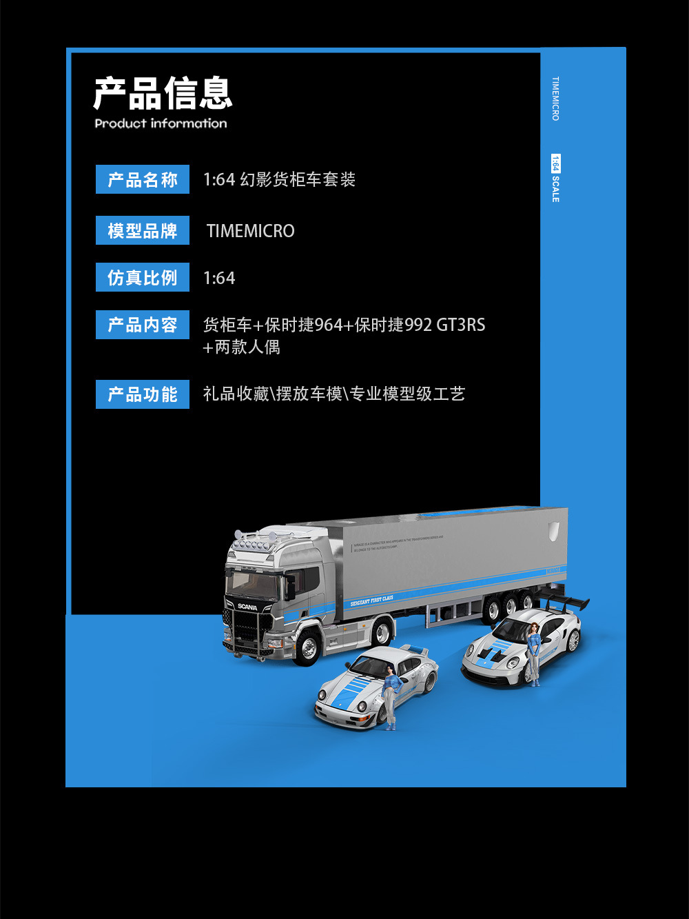 TM 1:64 保時捷964 992 斯堪尼亞貨櫃車幻影系列仿真合金車模