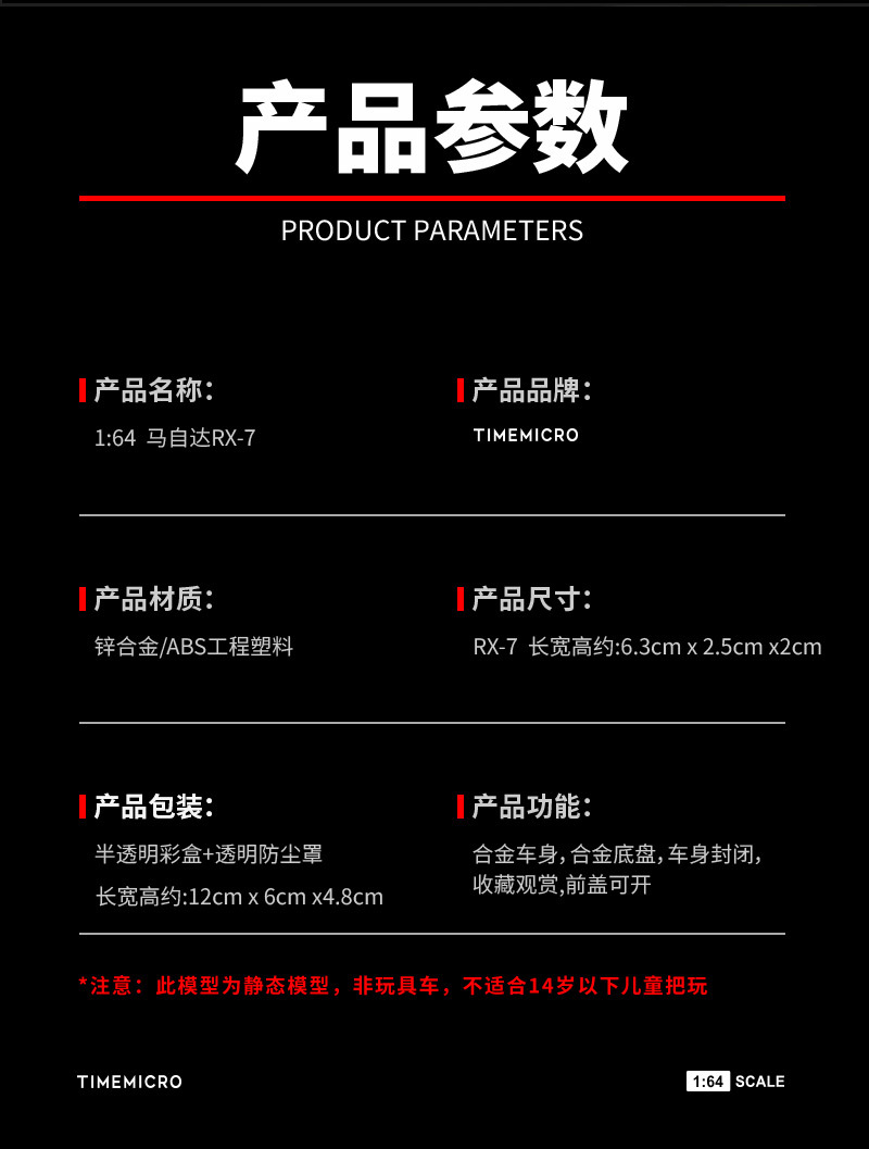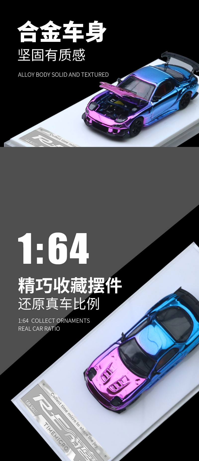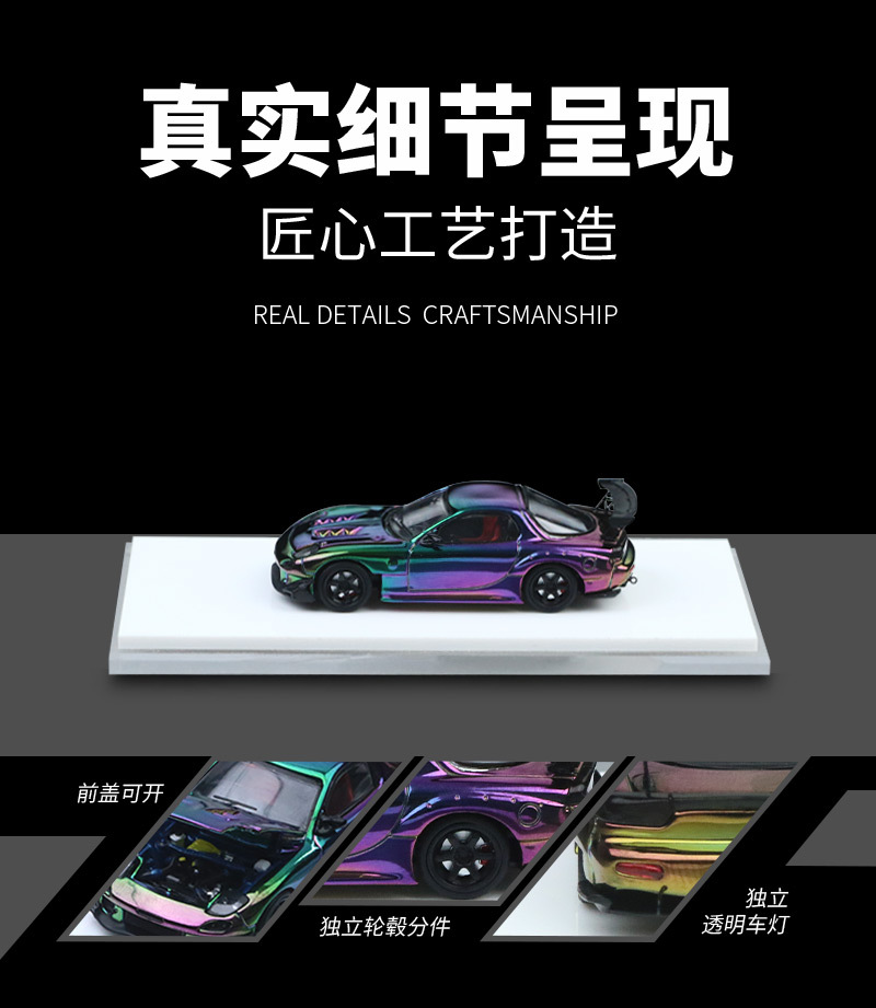 TimeMicro 1:64 馬自達RX-7雨宮 開蓋版電鍍色仿真合金汽車模