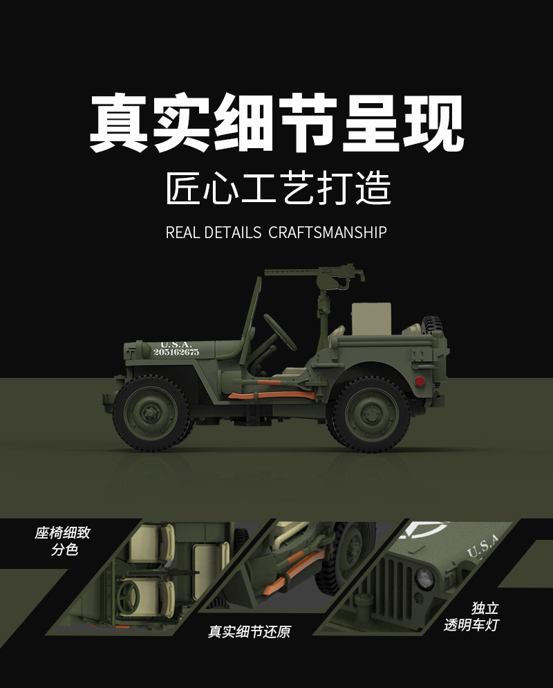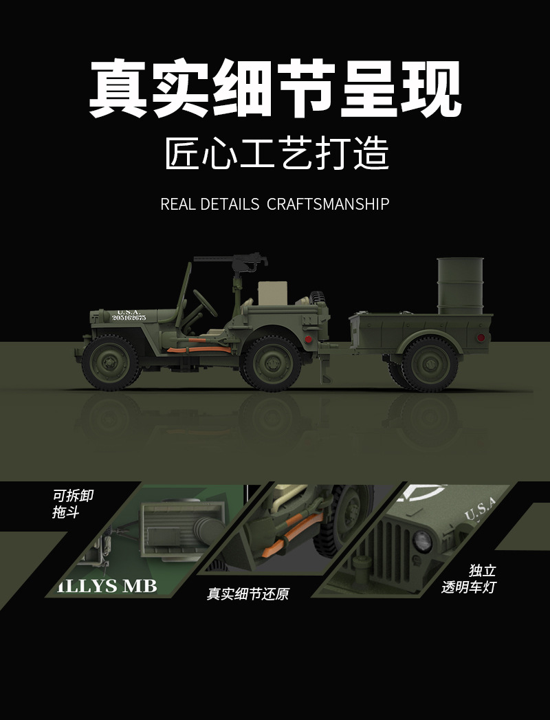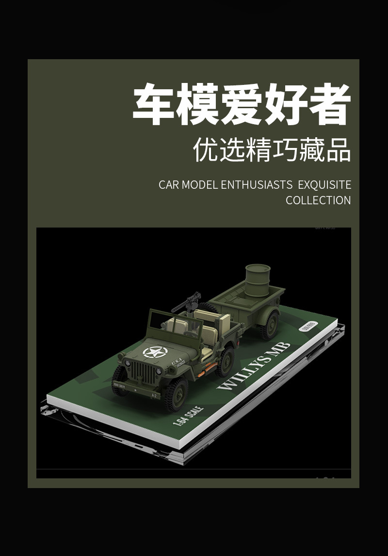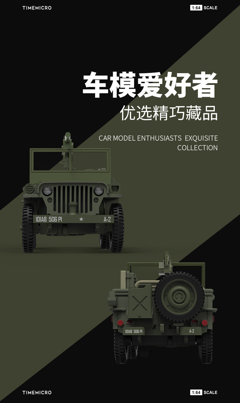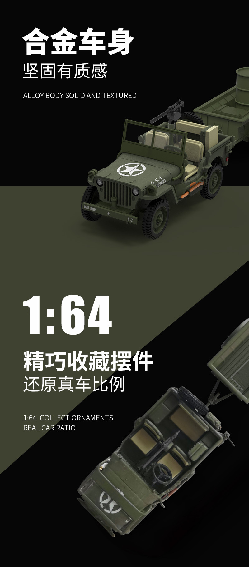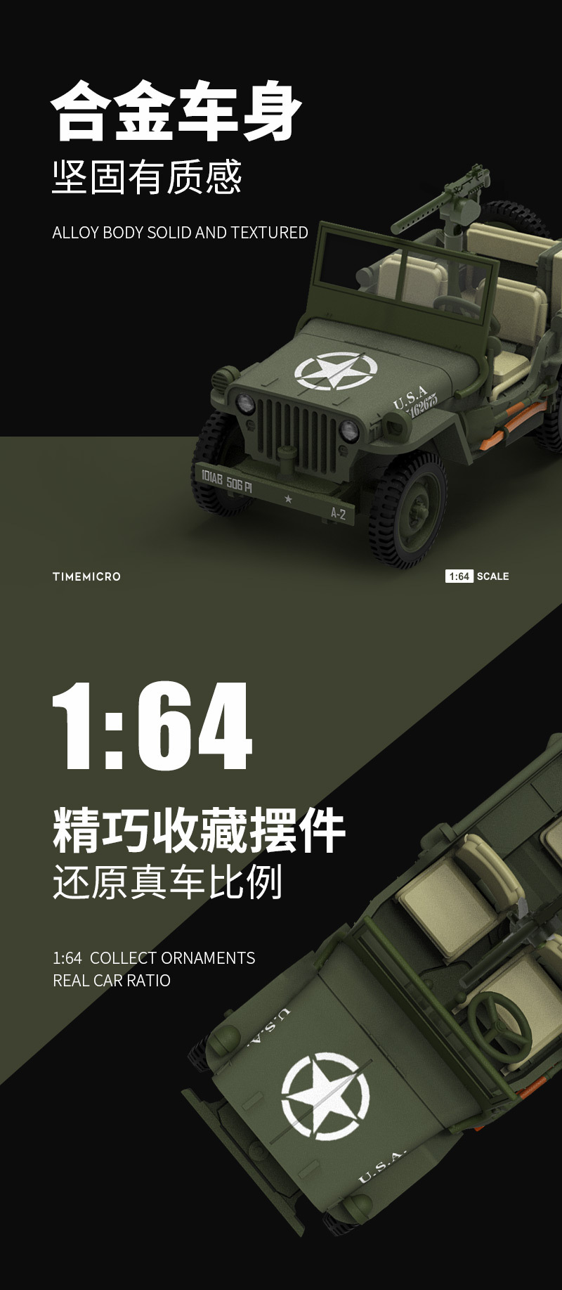 TM 1:64 二戰吉普車威利斯軍綠色仿真合金車模 收藏禮品擺件