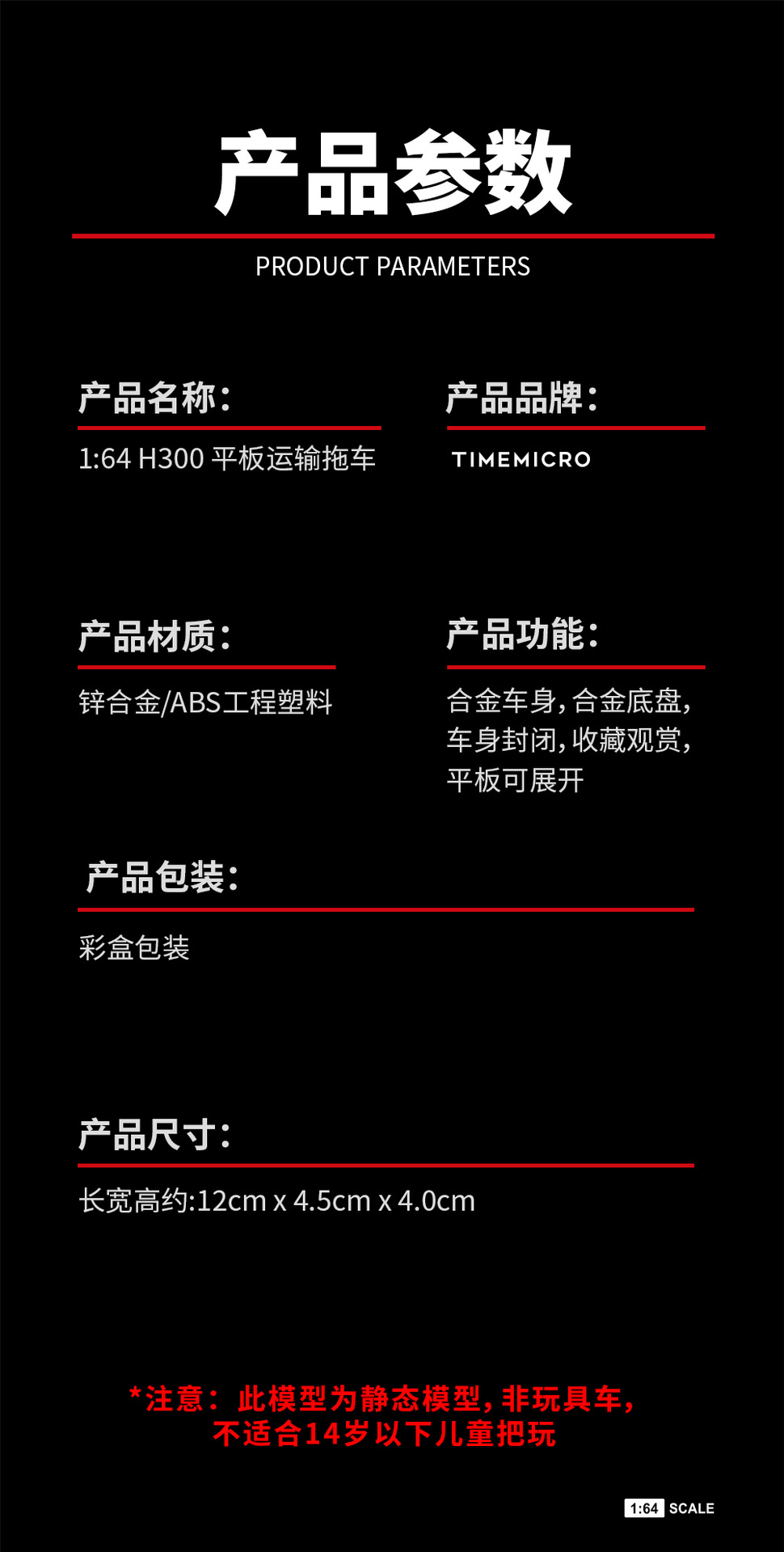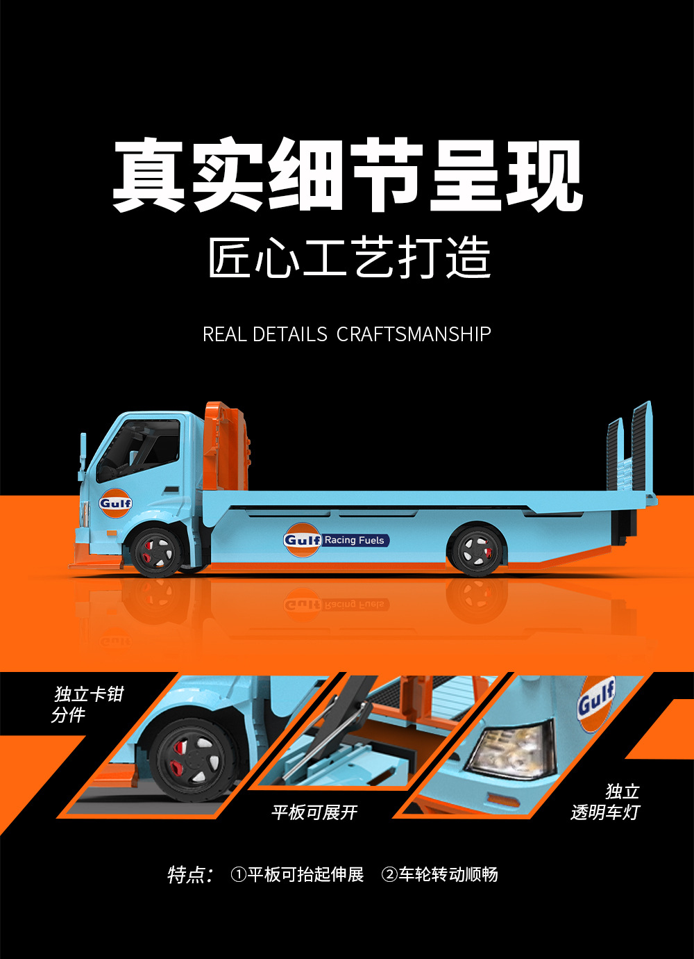 TIME MICRO 1:64 H300平板運輸拖車 海灣石油和ADVAN 仿真合金車模型